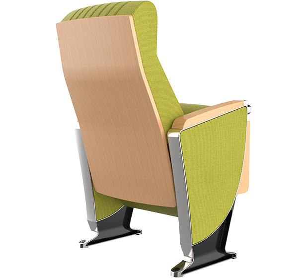 5.下藏式写字板:写字板链接铝头、托板采用优质铝合金材料经模具一体压铸成型。写字板面板采用实木多层板材料经模具一体压铸成型,写字板固定方式为机械原理高强度螺栓,使写字板链接部位越用越结实,不会出现松弛现象,尺寸规格:长度为381.4±2mm,宽度为261.2±2 mm,厚度为15mm;扶手和写字板向上倾斜6.5度保证书写自然状态,写字板打开回收时需带消音功能,不可有反弹力与噪音出现.力学性能通过相关家具产品质量检验中心QB/T2602-2013《影剧院公共座椅》的相关检测依据,写字板静载:300N。